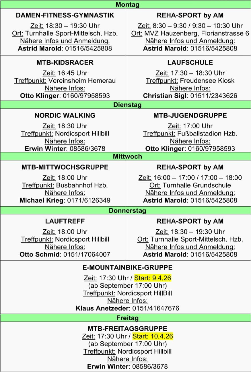 Nähere Infos bei Otto Klinger: 0160/97958593