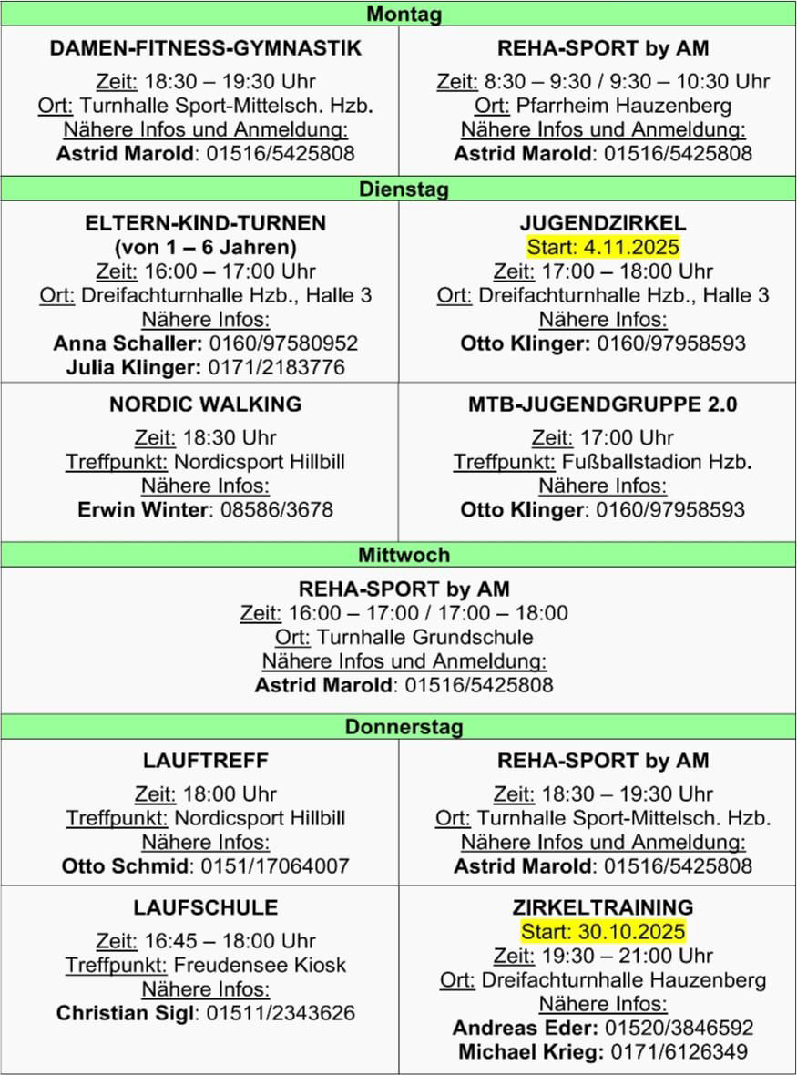 Nähere Infos bei Otto Klinger: 0160/97958593